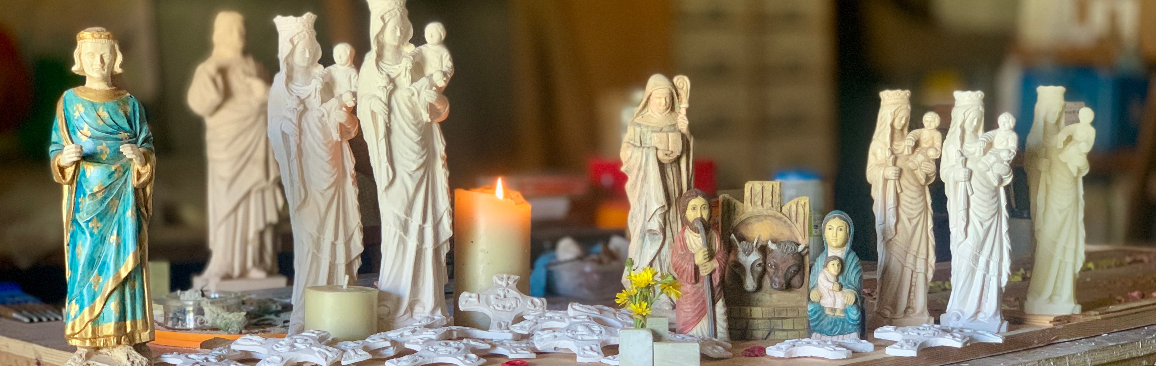 Je réalise des reproductions d’œuvres anciennes, ou des pièces inspirées de cet esprit magnanime qui animait nos pères, ceux qui ont bâti nos cathédrales, mais aussi ceux qui ont dressé nos églises, nos calvaires, et la madone du coin de la rue...